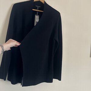 A versatile addition to professional wardrobes, this Eileen Fisher short jacket offers a sleek, minimalist design. Ideal for layering over blouses and dresses, it features a tailored silhouette ensuring effortless elegance.