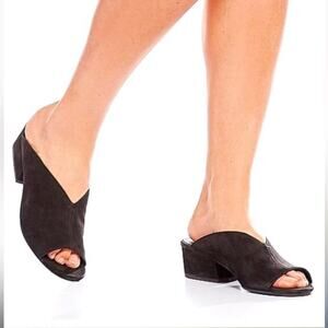 Eileen Fisher Womens Size 8 Black Katniss Nubuck Leather Block Heel Mules Sandal