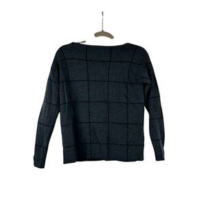 Eileen Fisher Women's Size PP Gray/Black Merino Wool Blend Plaid Sweater