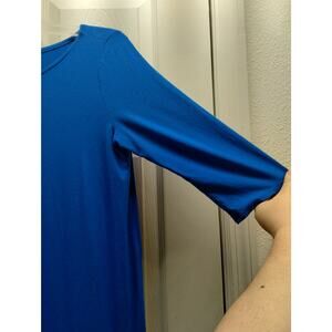 Eileen Fisher Women's Size Small Blue Jersey Stretch Elbow Sleeve Shift Dress