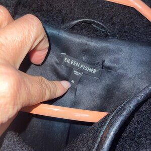 Eileen Fisher Womens Size XL Black Suri Alpaca Coat With Leather Trim Classic