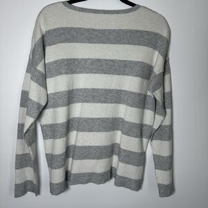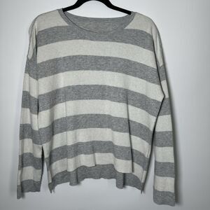 Eileen Fisher Womens Small Gray White Stripe Cashmere Blend Boxy Sweater Coastal
