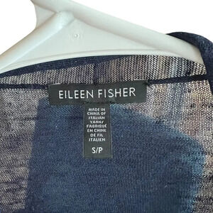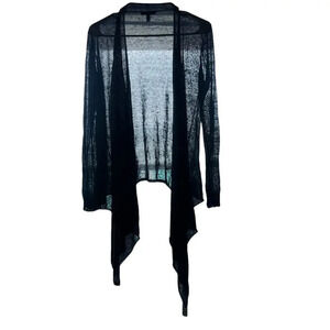 Eileen Fisher Womens Small Navy Waterfall Sheer Open Front High-Low Hem Cardigan