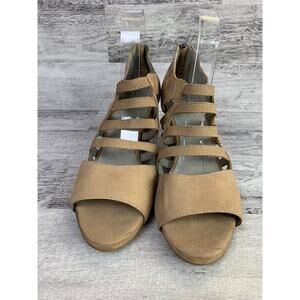 Eileen Fisher Womens Strappy Wedge Sandals Size 9.5 Beige Open Toe