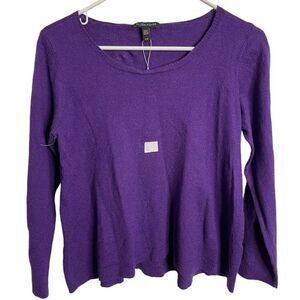 Eileen Fisher Womens Sweater L Purple Wool Blend Boatneck Bracelet Sleeve Mature
