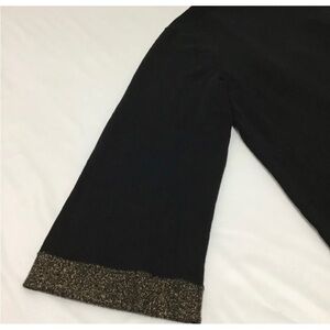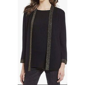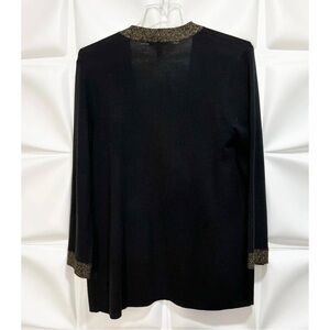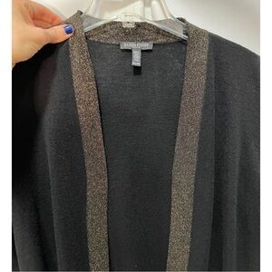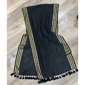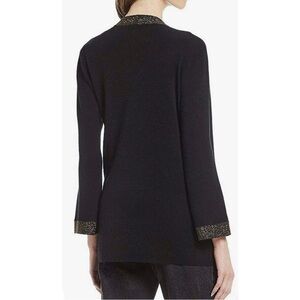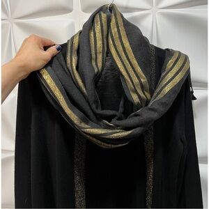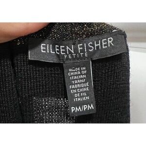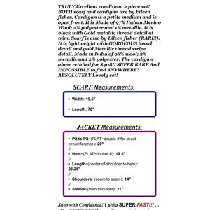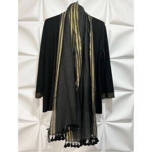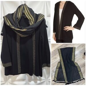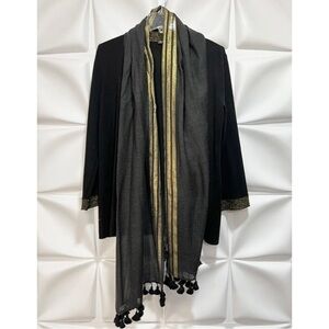 Eileen Fisher Womens Sz PM P M Black Gold ITALIAN Wool Cardigan Tassel Scarf Set