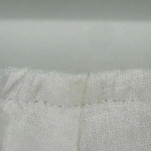 Flaws: there’s 1 small and light stain in the back middle by the waist area shown on photos. No material tag but I’m sure it’s line . Button on the side zip is kind of loose but can tighten it back. Easy fix. Other than that, pants is still in great condition.
