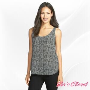 Eileen Fisher Women's 100% Silk Sz Scoop Neck Tank Roadster Print Silk Crepe. Shirt Tail Hemline 100% Silk. Slightly Longer In Back