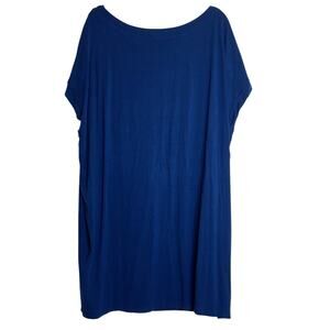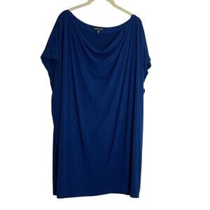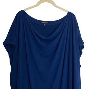Eileen Fisher Women's Tunic Top XL Blue Draped Cowl Neck Dolman Cap Sleeve Jersey Knit USA