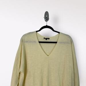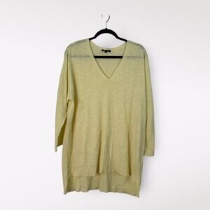 Eileen Fisher Womens V Neck Yellow Linen Cotton Lightweight Top Size M Sheer