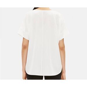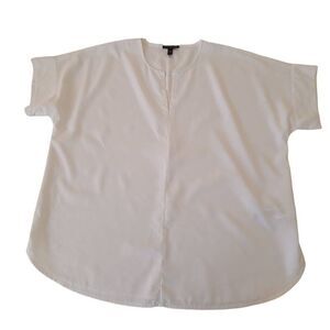 Eileen Fisher Womens White Tencel Short Sleeve Box Top Small