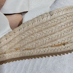 Condition is shown in photos. Some staining in on the espadrille side as shown. Some Ivory color rubbed off on the inside of one shoe near the ball of the foot area as shown. Excellent condition upper. Excellent condition sole with almost no wear as shown in photos.