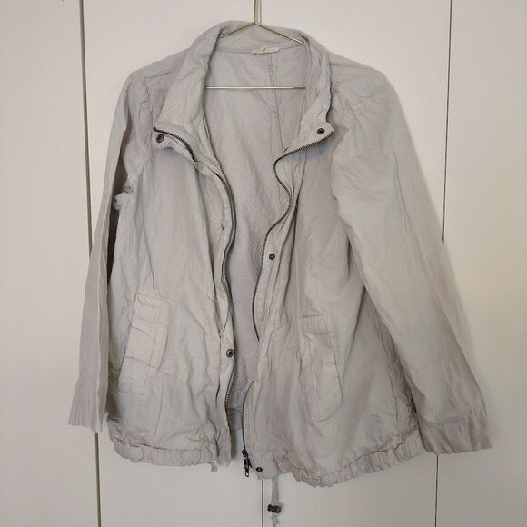 Eileen Fisher Women's XL Rumpled Jacket Cotton Lightweight Tan Cream Coat