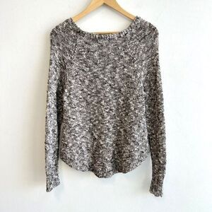 Eileen Fisher Women’s Medium Grey Knit Fuzzy Italian Yarn Linen Sweater Scoop