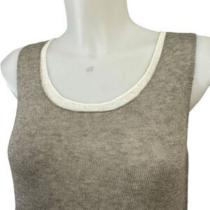 Eileen Fisher Wool Blend Knit beige White Scoop Neck Tank Top sz small