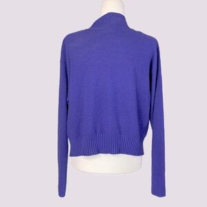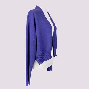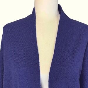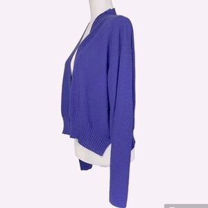 Eileen Fisher Wool Cardigan M/L Cropped Open Front Sweater Purple Lightweight