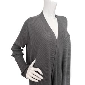 Eileen Fisher Wool Cardigan Rib Knit Draped Open Front Sweater