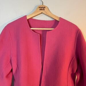 Gently used, no flaws visible, great condition! The Brand tag is unattached, but will be included in the pocket. Such a gorgeous thick pink wool and cashmere blend jardigan coat blazer. So pretty in Barbie pink.