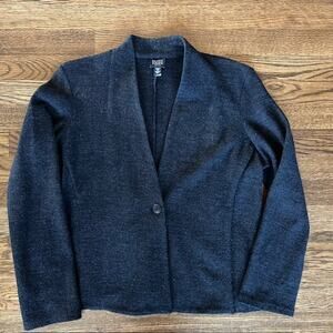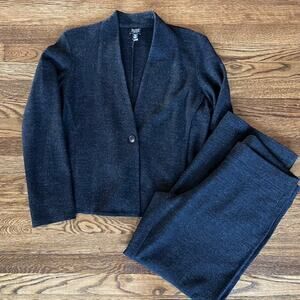 Eileen Fisher Wool High Collar Blazer Jacket and Pants Set Womens PL Dark Gray