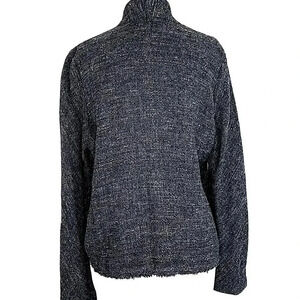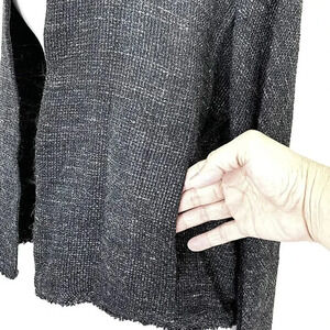 Eileen Fisher Wool Linen Blend Frayed Hem Open Front Blazer Cardigan Jacket