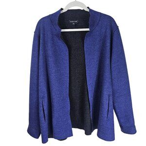 Eileen Fisher jacket, wool jacket, open front jacket, women's large jacket, blue black jacket, dual-tone jacket, women's coat, stylish outerwear, lightweight coat, winter wear, warm jacket, chic layering, fashion jacket, mature, office, winter, fall, everyday, old money, preppy, wool topper, relaxed fit
