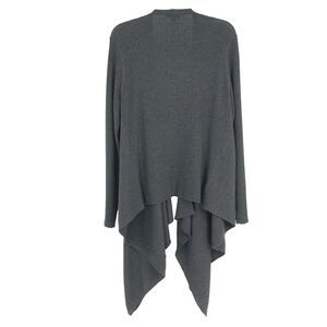 Eileen Fisher Wool Waterfall Cardigan LARGE Gray Ribbed Angled Front Open
