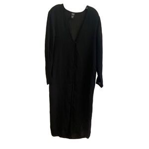 Eileen Fisher Wool Blend Striped Cardigan Duster Semi Sheer