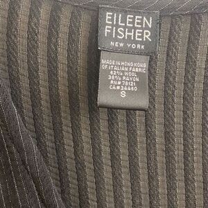 Eileen Fisher Wool Blend Striped Cardigan Long Duster Small Semi Sheer