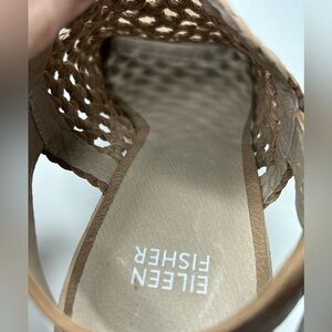 Eileen Fisher Woven Tan Leather Open Toe Sandal Heel Size 9