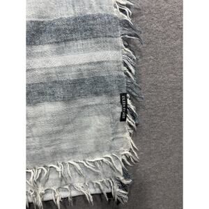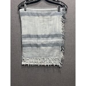 Eileen Fisher Wrap Scarf Linen Blend 78”x13.5” Blue Coastal Striped Fringed