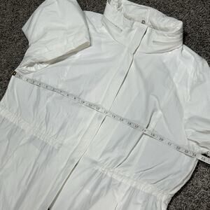 Eileen Fisher XL Gorpcore Hidden Hood Utility Raincoat Jacket Organic Cotton