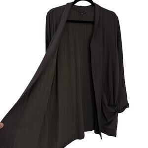 Eileen Fisher XL Jacket Cardigan Gray Stretch Crepe Open Front Pockets