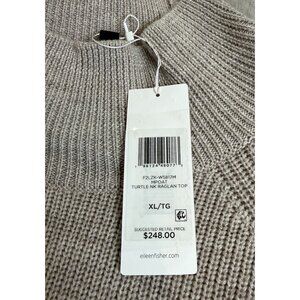 Eileen Fisher XL OAT Turtle Neck Raglan Top Sweater Extra Fine Merino Wool $248
