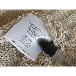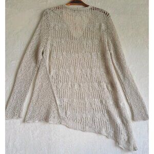 Eileen Fisher XL Open Knit Linen Blend Melange Crochet V-Neck Pebble Assymmetric