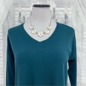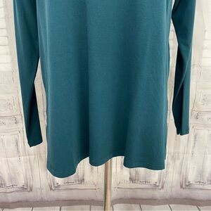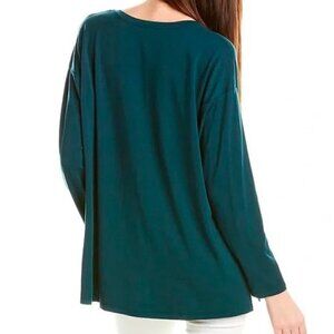 Eileen Fisher XXS 2XS Green V-neck Jersey Boxy Top Deep Agean Shirt Oversized