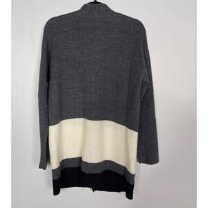 Eileen Fisher XXS Gray Cream Felted Merino Wool Stripe Long Cardigan Sweater