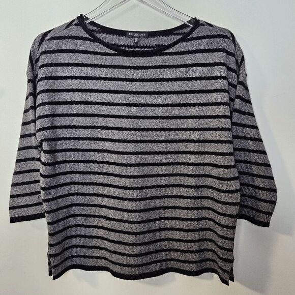 Eileen Fisher Yak/Merino Boxy Sweater Womens Black/Gray Size Medium Petite