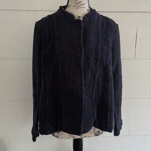 Eileen Fisher Zen Collar Navy Tweed Cream Cotton Linen Jacket Women Medium (H6)