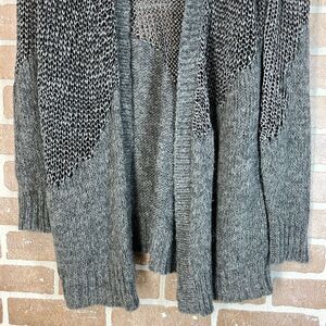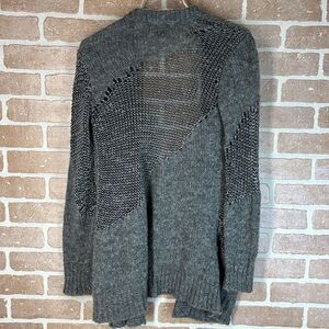 Open knit and closed knit gray alpaca blend cardigan. Chest measures 18 inches across and length of 28 inches. Questions? Leave a comment below!
