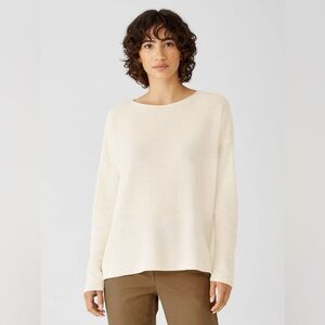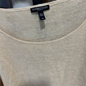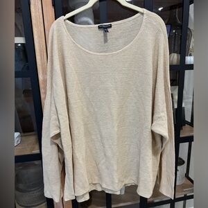 Eileen Fisher beige sweater organic linen top blouse textured long sleeve plus