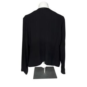 Eileen Fisher black 100% silk drape front jacket with leather trim size PL