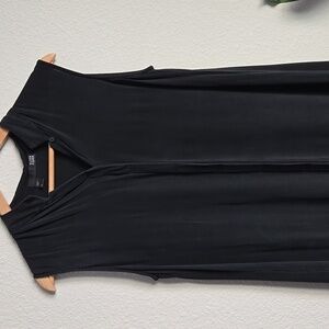Eileen Fisher black button down sleeveless Dress With Side Slits 100% silk