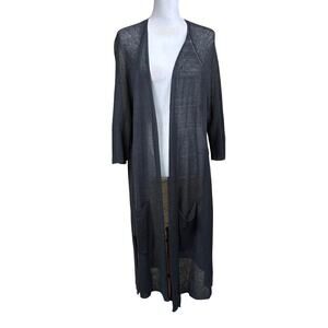 Eileen Fisher black cardigan, organic linen/nylon, miminalist, sustainable