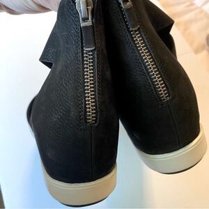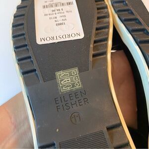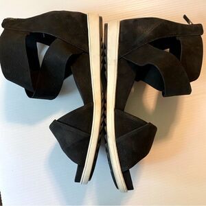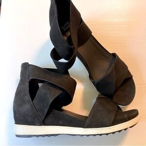 Eileen Fisher black leather Viv Criss Cross Wedge Sandals back zip shoes 11