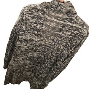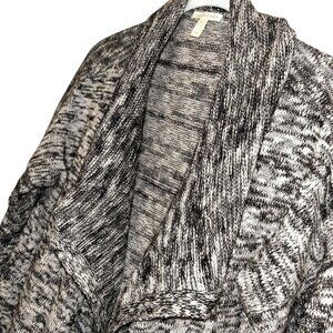 Eileen Fisher black white marl knit cascading opera duster cardigan sweater S