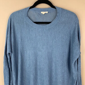 Excellent condition blue oversized knit linen sweater! Crew neckline with hi low design. Bust measures 26” and length is 25” in front.