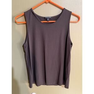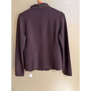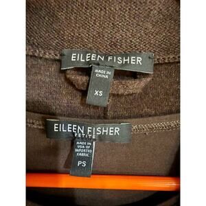 This is a very quality blazer with leather detailing fabric covered buttons, and there is a brown silk tank underneath style dress up or dress down women’s size extra small on the blazer and petite small on the tank 2 piece
