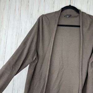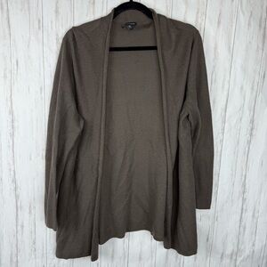 Eileen Fisher brown taupe organic cotton linen blend sweater XL. Gently preloved in great condition. Stay cozy and stylish with this elegant brown open front sweater. Perfect for layering and adding a touch of warmth to any outfit.