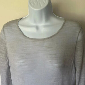 Eileen Fisher gray linen blend slub tunic long sleeve hi low Size M