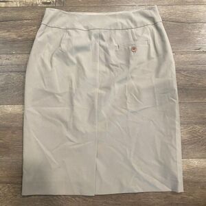 Eileen Fisher knee length pencil skirt lined bone khaki back slit size 6